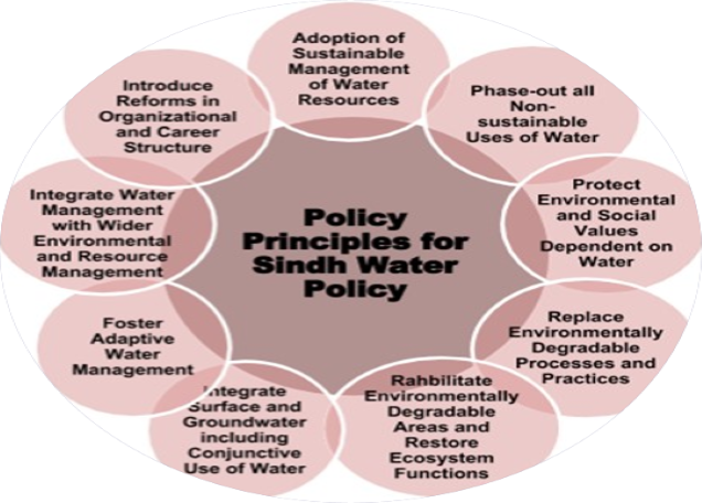 Goal : The goal of the Sindh Water Policy is to effectively manage and develop water resources from all available sources, including surface water, groundwater, wastewater, the Indus Delta, wetlands, and arid regions. This management aims to ensure the sustainable use of water for the prosperity of the people of Sindh. The policy focuses on meeting the social, economic, and environmental needs of the province while safeguarding water resources for future generations