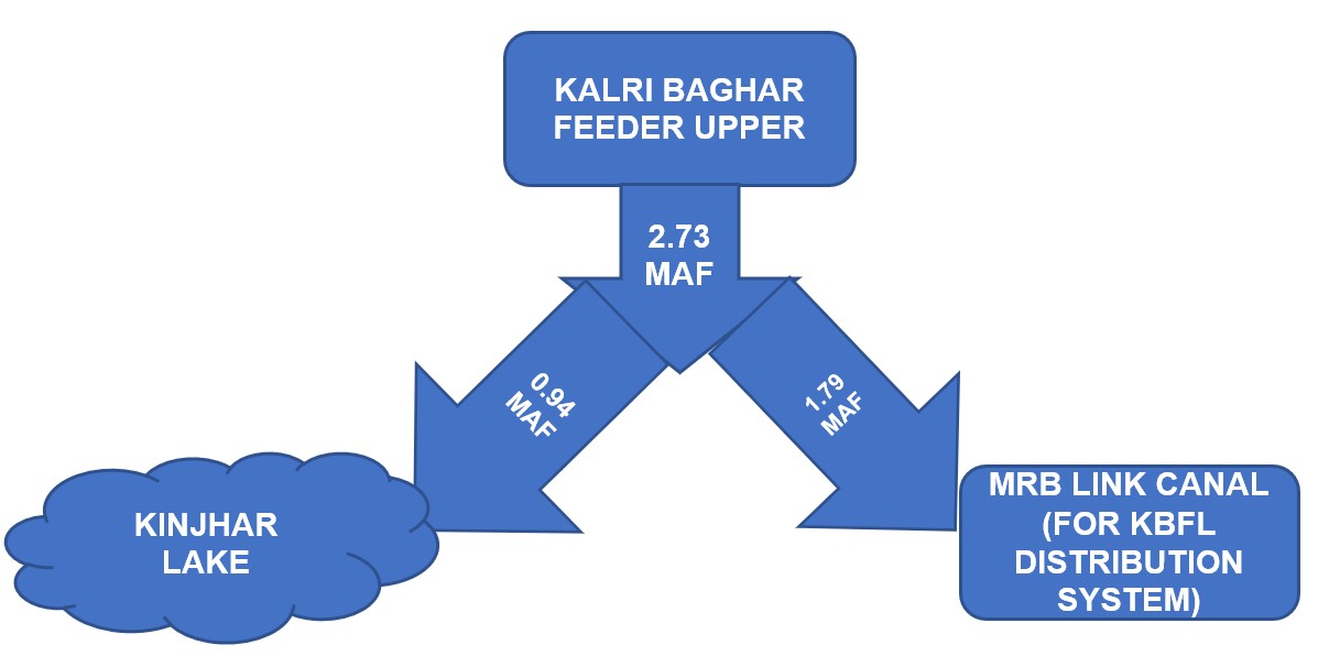 Inflow from Kalri Baghar Feeder Upper (KBFU) to Keenjhar = 0.94 MAF