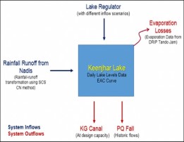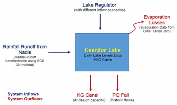 Rainfall contributions from Hill torrents approximately 50,000 acre- ft has been estimated from the nullahs draining into the Lake