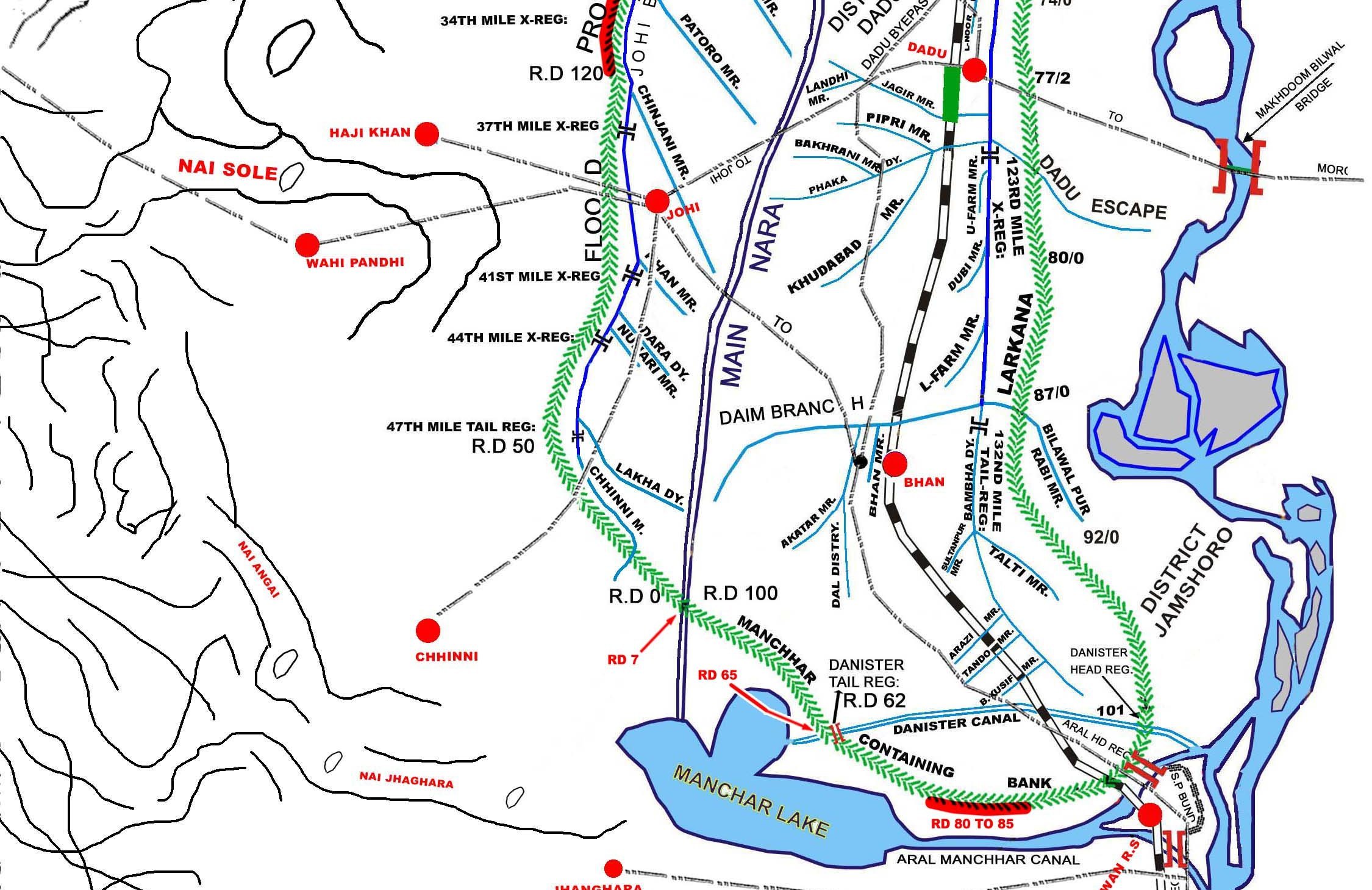 | The main feeding source of the Lake is Kalri-Baghar Feeder (upper) which off- takes from right bank of Kotri Barrage . | |