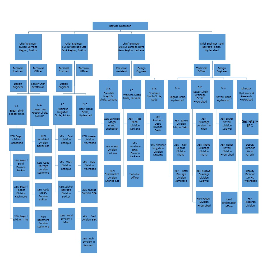 INTRODUCTION : Major tasks performed by the Irrigation Department are operation and maintenance of the irrigation and flood protection system, regulation of flows of River Indus and canal systems, covering Inter Provincial and Intra Provincial Systems. Execution of development schemes and mega projects is also one of the major responsibilities. Other duties handled by the department, which are also important are dealing with the administrative matters, financial matters, Public Accounts Committee’s issues irrigation cases, court cases and assembly business etc.