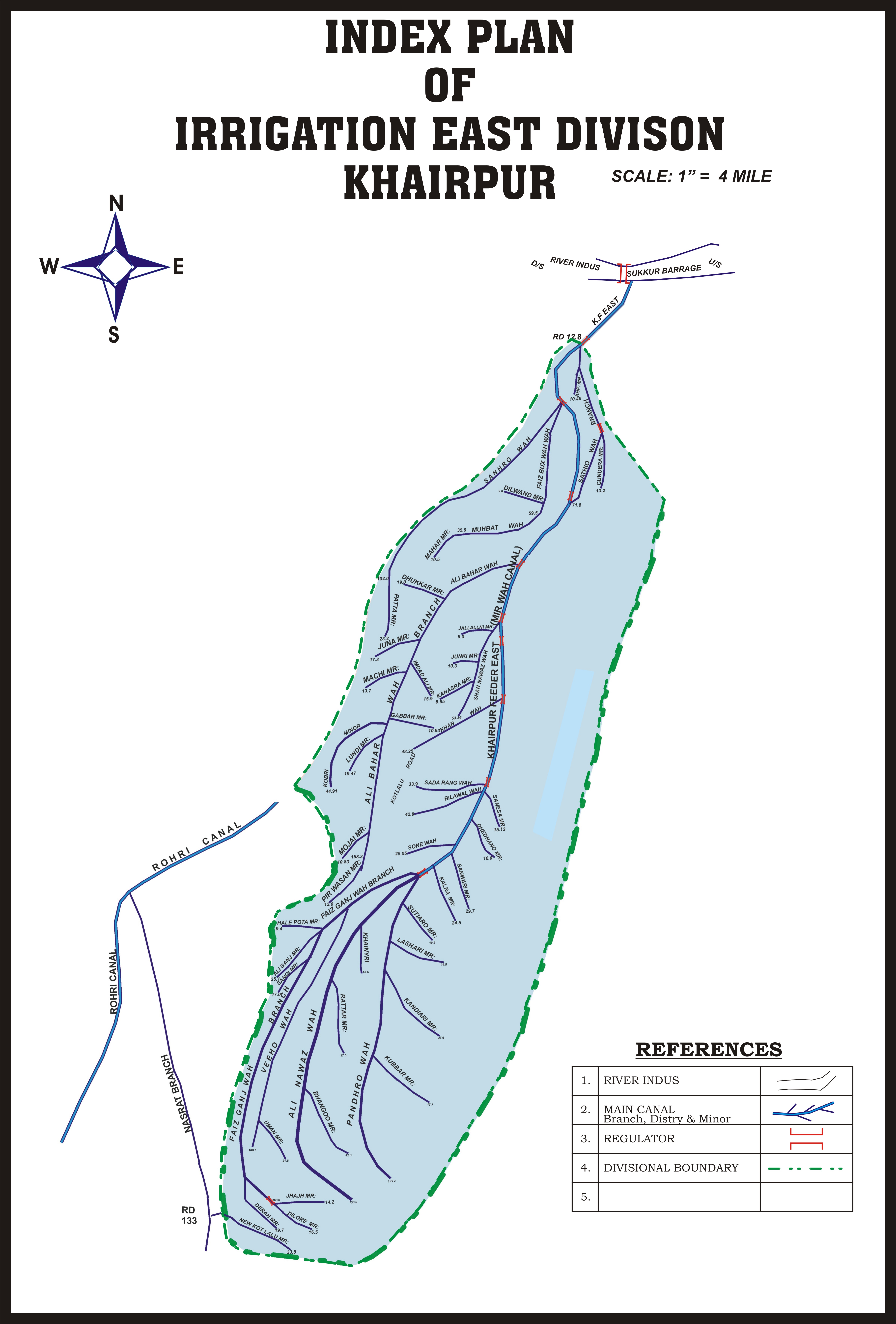 This Barrage which is the backbone of the economy of the entire Country through its net-work of Canals providing Irrigation supplies or an area of 7.63 million acres which forms approximately 25% of total canal irrigated area of the country. The Nara canal which is one of the 7 Canals off taking from this Barrage is the longest canal of this country, carrying discharge almost equal to that of Thames River at London and its bed width which is 346 ft. is 1 ½ (one and half) times as big as of Suez Canal. In fact Nara Canal is not a man-made canal has it was the southern-most part of Hakro River which emanated from the foot hills of Sutlej which after traversing through the Punjab and Bhawalpur Plains joined Nara through Raini River, the remnants of which are still exiting in Ghotki Taluka.